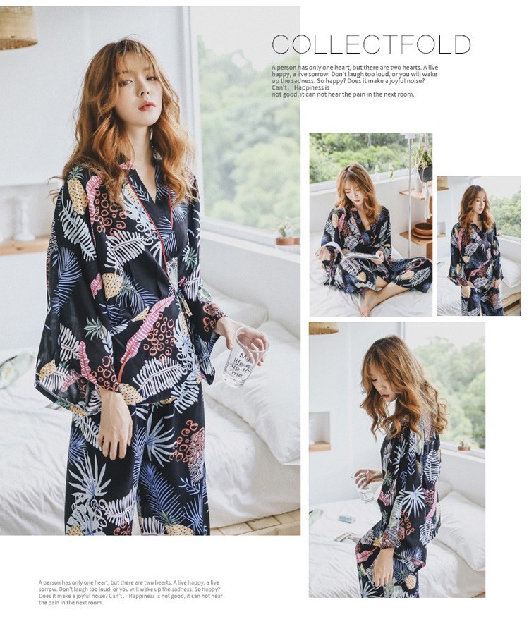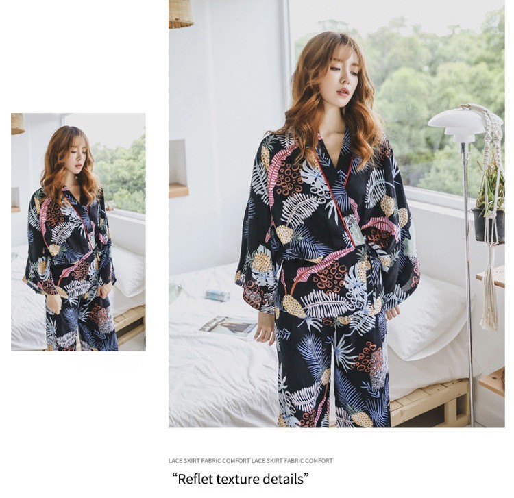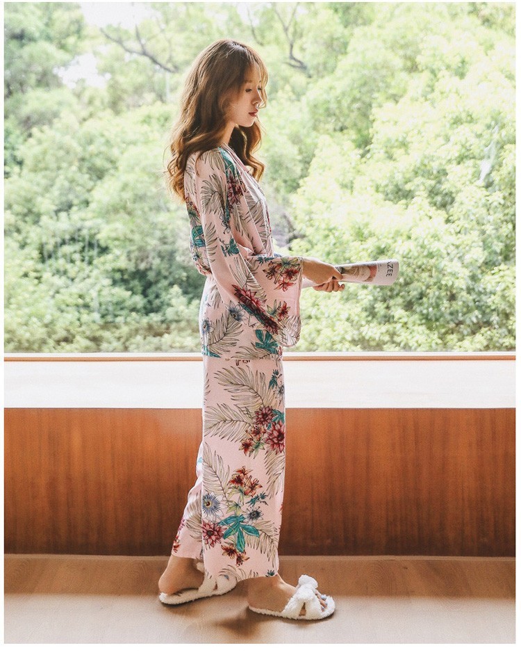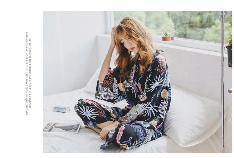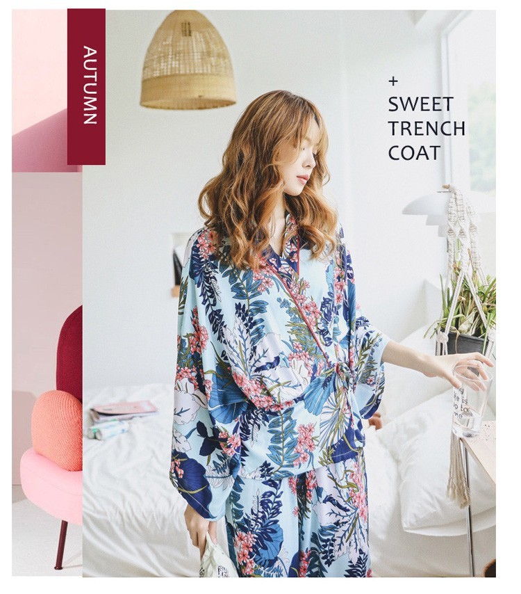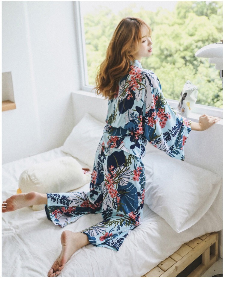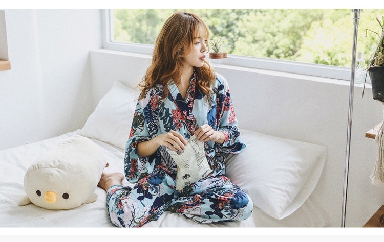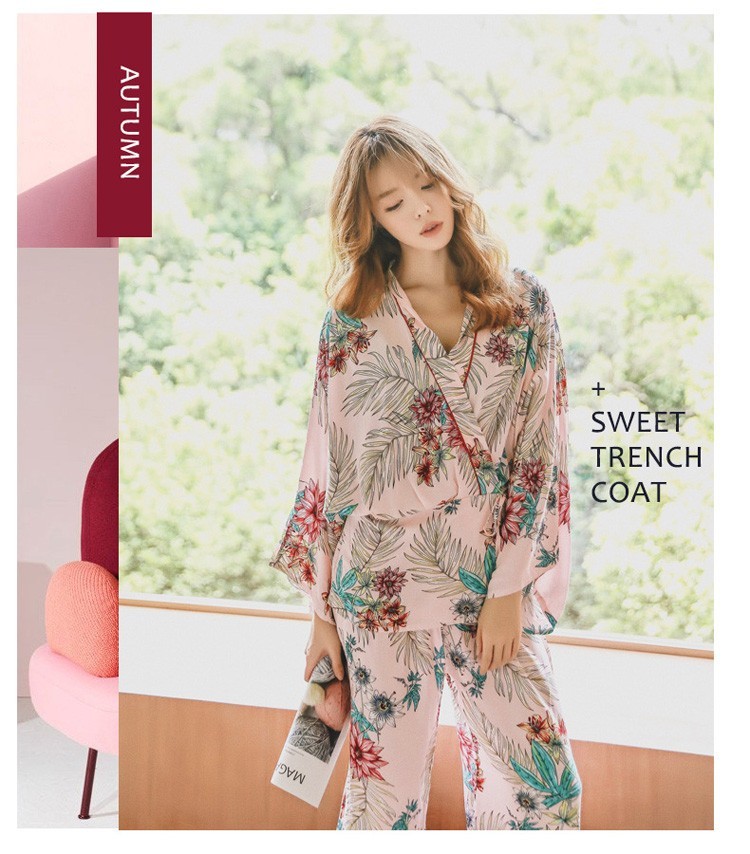 連携キーワード:2点パジャマ レディース 春秋 花柄パジャマ 上下セット Vネック 綿 長袖 和服風 ロングパンツ 女性 可愛い ルームウェア 部屋着 寝巻き 3色