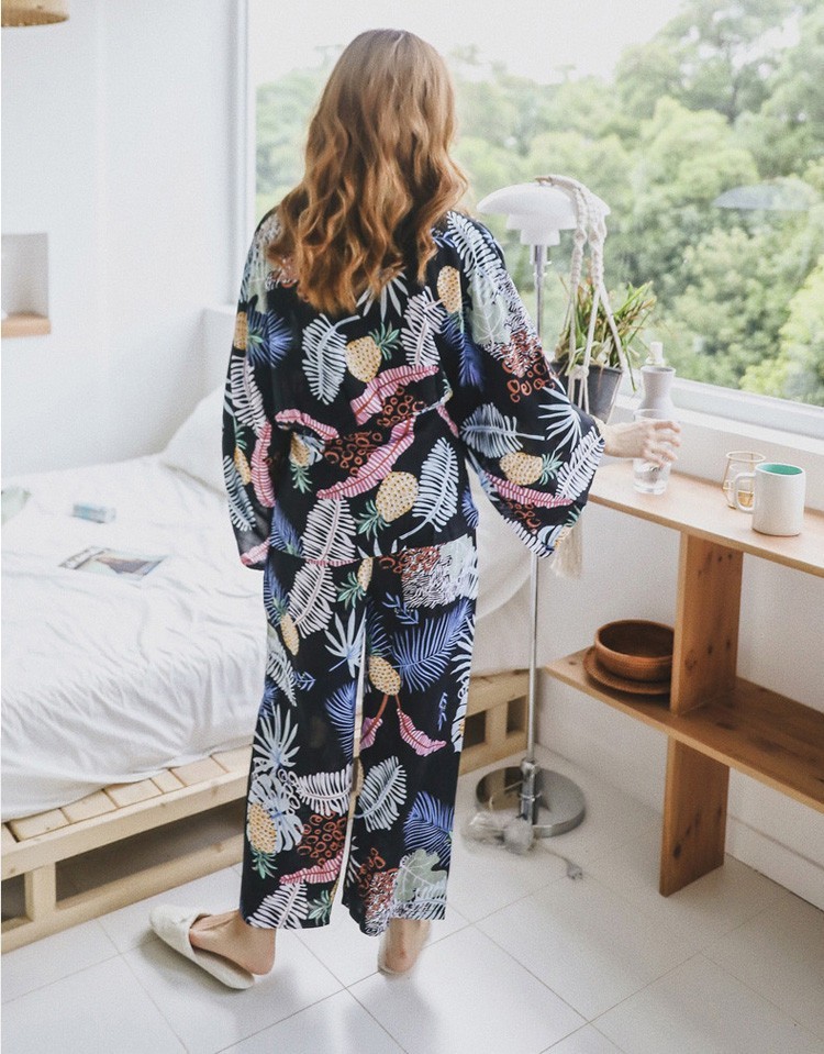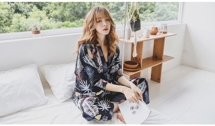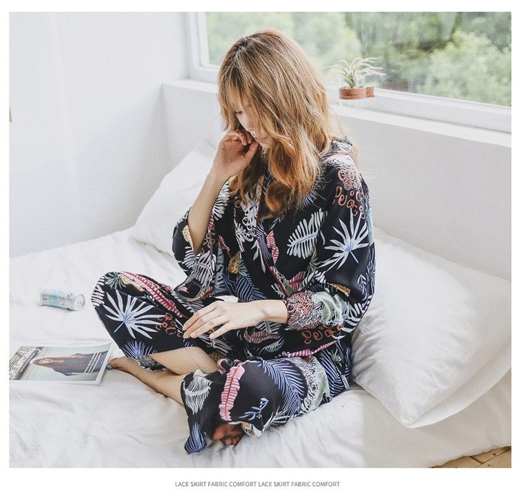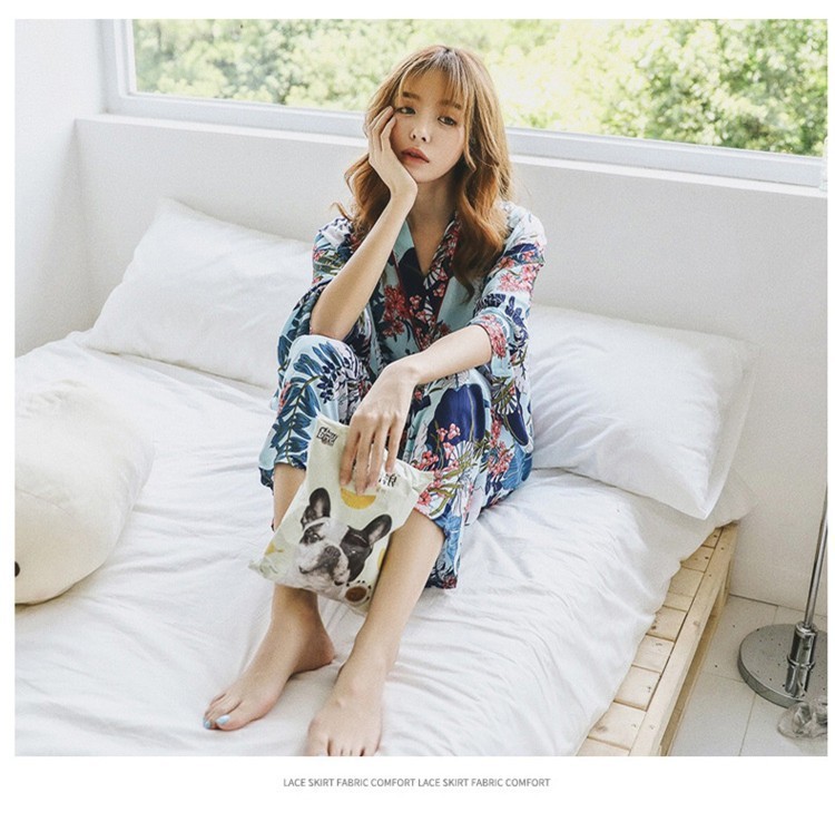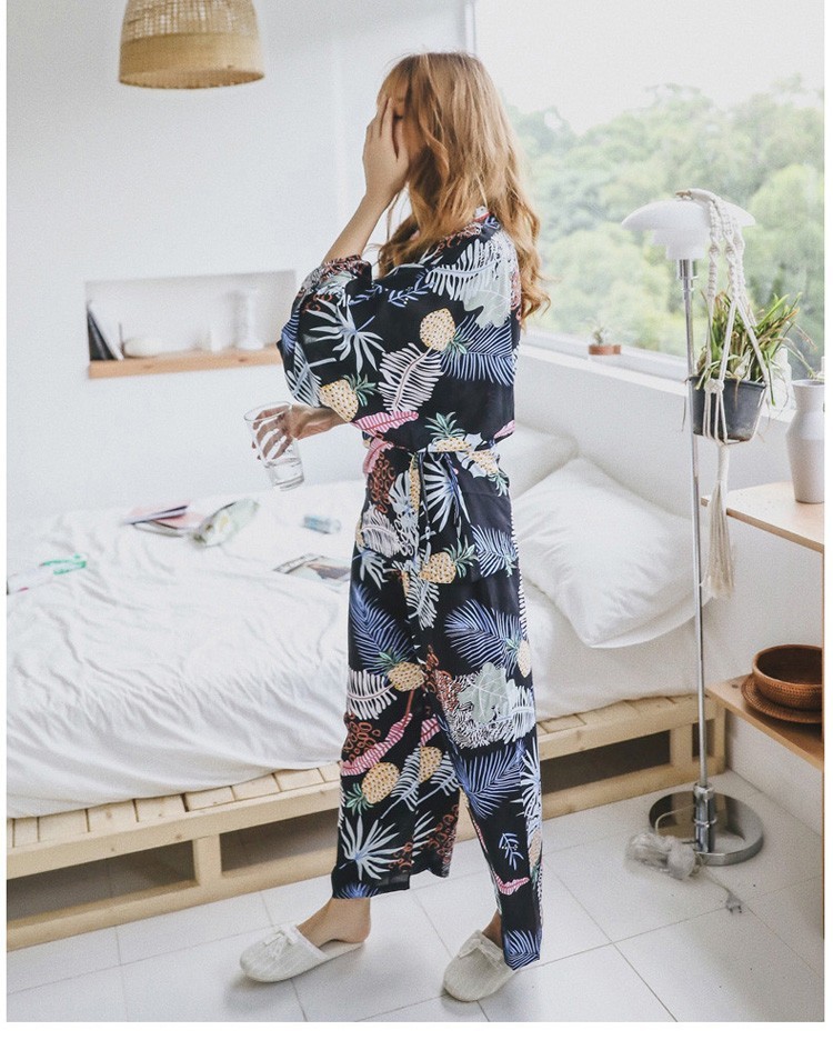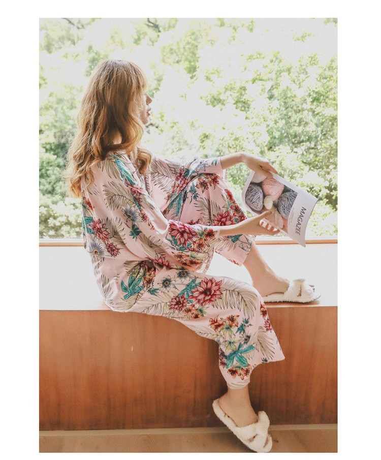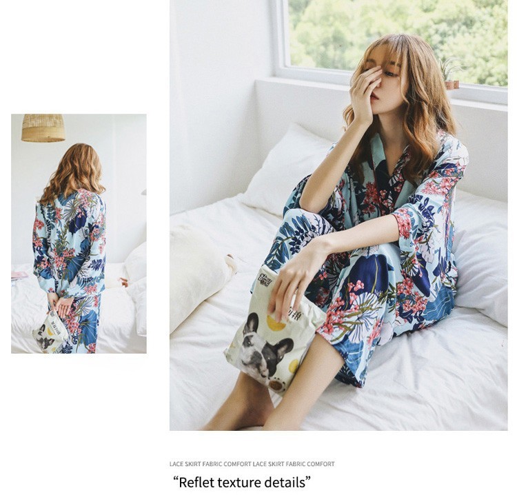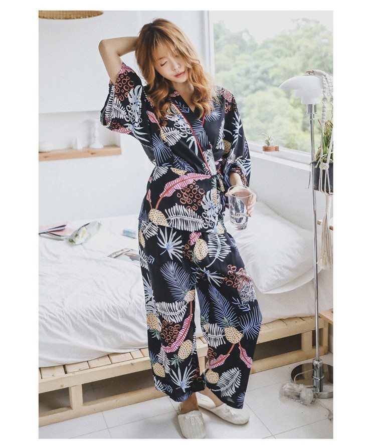 連携キーワード:2点パジャマ レディース 春秋 花柄パジャマ 上下セット Vネック 綿 長袖 和服風 ロングパンツ 女性 可愛い ルームウェア 部屋着 寝巻き 3色