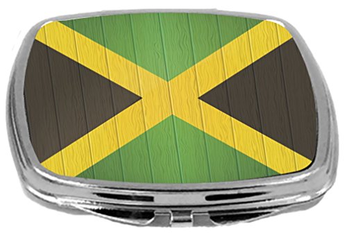 Rikki Knight Compact Mirror on Distressed Wood Design, Jamaica Flag, 3 Ounce