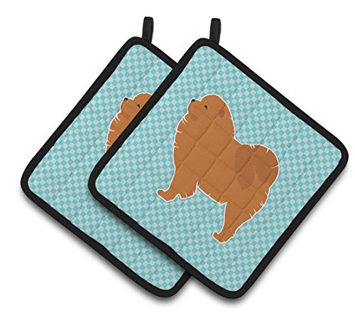 Caroline's Treasures Chow Checkerboard Blue Pair of Pot Holders BB3751PTHD, 7.5HX7.5W, Multicolor