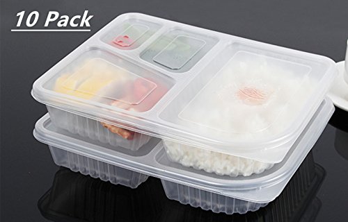 ☆ CONVENIENCE + PORTION CONTROL IN ONE BOX: Come with 10 Pack of leak resistant & airtight 3 compartment food storage containers with lids for daily meals and health diet. Each meal prep container can store total of 32oz which to use them for your staple food, sandwich, dessert, fruits and enjoy the delicious food in one container anywhere you go.