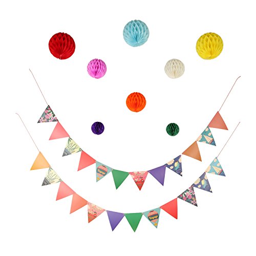 -. Feature : Package include - 2 X Birthday Banner, 8 X Tissue Pom Pom Decorations. / Every pack includes 12 separate flags and 1 rope to create the bunting. Tissue paper balls include 2 X 4", 3 X 6", 3 X 8" with different colors, just open them up and use tape or a paperclip to hold them, then hang them with the attached string loop. / Material - Happy birthday banners are made premium quality paper with vivid color P.R.Inting will definitely catch the attention of your loved ones. / Banner Size - 6.30 x 6.02 x 6.02 inches. Can be hang from the ceiling, mounted on the walls and window, or used for table centerpieces. / Design - Special design for boy and girl birthday party decorations. Banners and balls are perfect for any age and any event or special occasion.