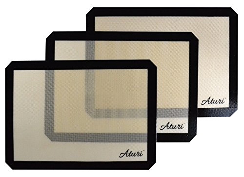 Aturi Professional Grade Premium Thick Silicon Non-Stick Baking Mat - for Baking, Rolling, and Pans | Great for Cookies, Macaron, Bun, Pastries and Bread Making - Value 3-Pack Black AT02001BL03