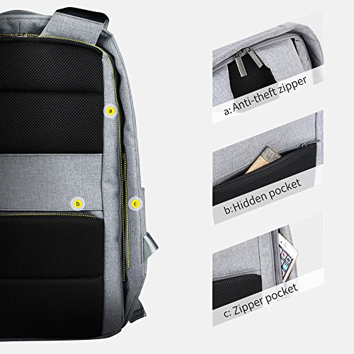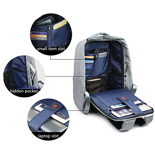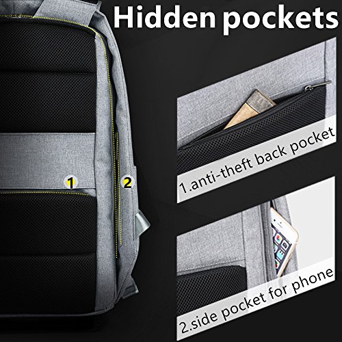 Hidden convenient pocket: One hidden zipper pocket locates on the left side. It's invisible from the outside, excellent for cellphone. So that you can get your stuff conveniently and keep it safe. One zipper pocket locates on the back of the backpack. Hidden feature is suitable to wallet, key, important item and so on. It's easy to take out and put in by yourself.