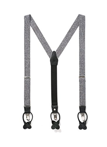 Binding : Apparel Product Description This pair is all about texture. With contrasting grey, white, and black colors, these suspenders boasting woven straps are a twist on the classic accessory. Subtle (yet durable) silvertone hardware and black, authentic full-grain details complement the intriguing texture. These look best paired with cool hues-think ocean blues and bold purples.