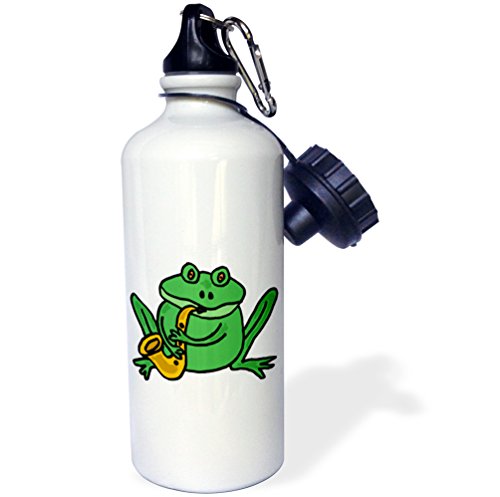3dRose wb_200201_1 "Funny Green Frog Playing Saxophone" Sports Water Bottle, 21 oz, White