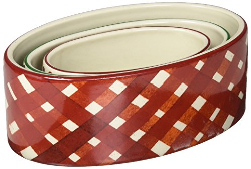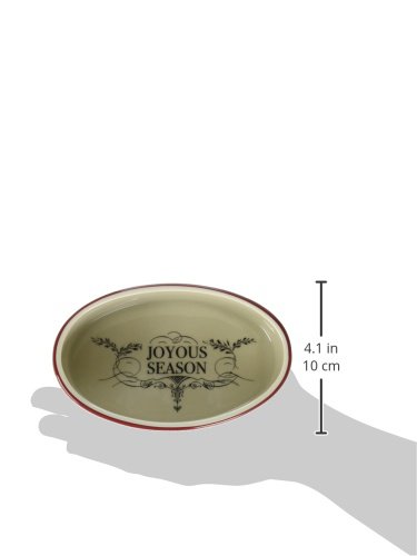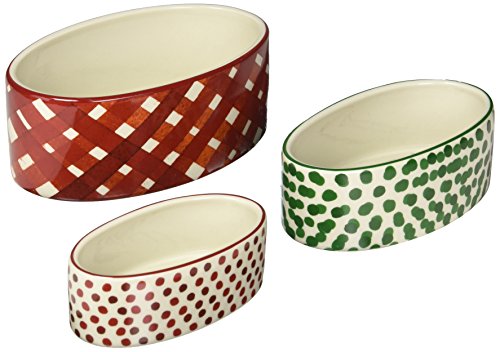 Creative Co-Op 6", 5" & 4"L Stoneware Oval Ramekin with Botanical Holiday Design (Set of 3), Multicolor