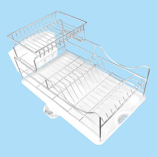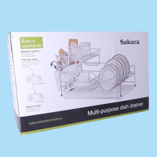 - Title : Sakura Two-tiers Compact Dish Rack / Kitchenware Dish Drying Rack / Dish Drainer with Removable Plastic Tray and Extendable Stainless Steel Drip Tray, Iron with Chrome Finished, Easy to Assemble