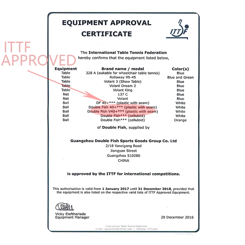 Certification :ITTF APPROVE,