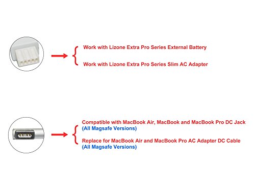 Lizone Long DC Cable for MacBook Air, MacBook Pro and MacBook Series Laptops MagsafeL Tip, Lizone Extra Pro Series External Battery DC Charging Cable, (Work with Apple MagsafeL Tip (L=1.5m)