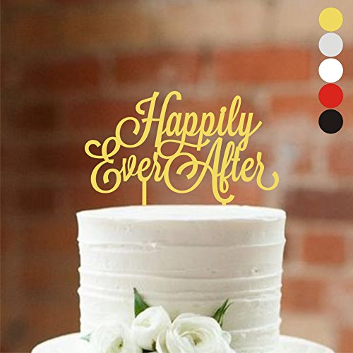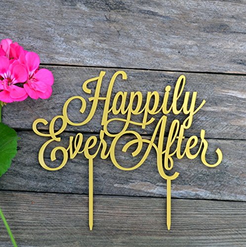 Cake topper Happily Ever After Wedding cake toppers for wedding Cake Decorations HappyPlywood (width 6", gold)