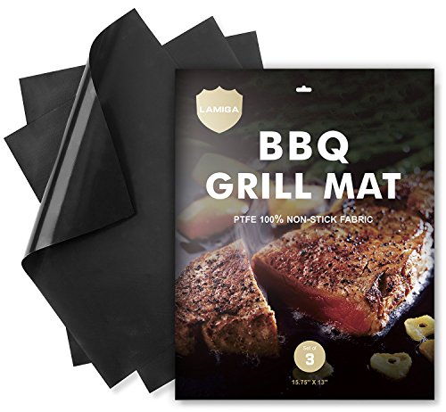 ★HIGH QUALITY: Able to withstand high temperature since it is made of heat-resistant advanced material. FDA approved certifies LAMIGA's Grill Mat to be safe to use when cooking. Non-stick BBQ mat can be cut to fit perfectly into your grill, oven, stove, pans, cake tin, etc.