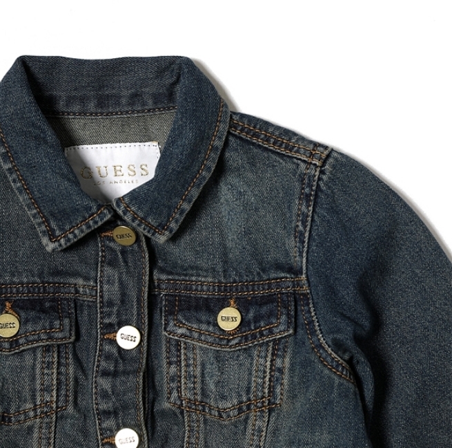 -여아 데님 자켓입니다. 워싱컬러가 멋스러운 데님 자켓입니다. 골드컬러의 금속 장식을 사용하여 데님 특유의 느낌을 살렸습니다.