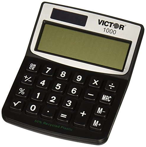 -. Binding : Office Product -. Brand : Victor -. Feature : Solar/battery-operated minidesk calculator. / Solar power with battery backup for use anywhere at any time. / Large, easy-to-read digits. / Tilted display allows viewing from various angles. -. Label : VICTOR TECHNOLOGIES -. Manufacturer : VICTOR TECHNOLOGIES -. ProductGroup : CE -. ProductTypeName : CALCULATOR -. Publisher : VICTOR TECHNOLOGIES -. Studio : VICTOR TECHNOLOGIES -. Title : 1000 Minidesk Calculator, Solar/Battery, 8-Digit LCD