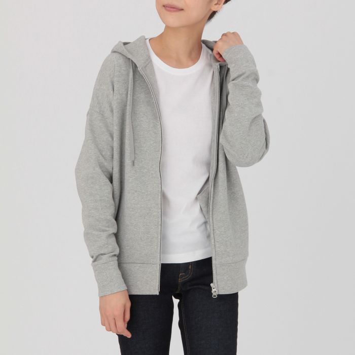 Muji 오거닉 코튼혼 이중 뜨기 더블 ZIP 파커 부인XS~S라이트 실버 그레이NEW