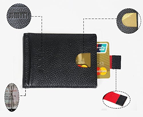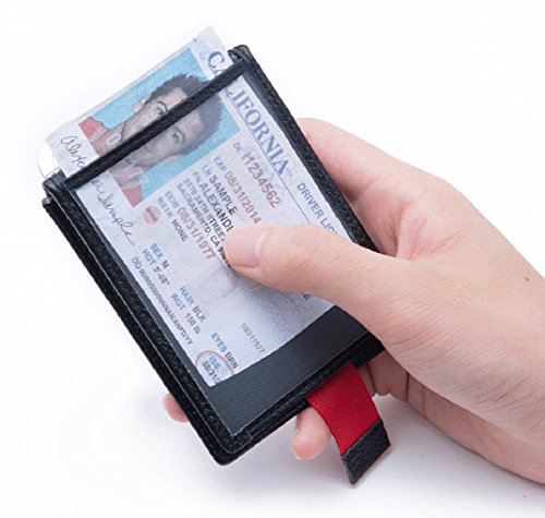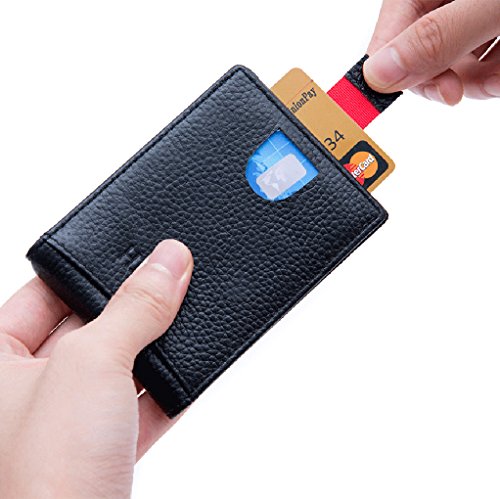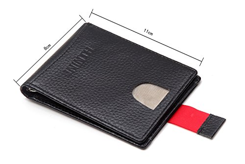 -. Feature : Innovative and practical design: you can have access to all cards simply by pulling out the red strap, Just insert the cards into the slots and the strap will go inside as well. We used a very solid metal money clip for making sure the cash section durable / Super slim: Size 11 cm X 8 cm / 4.33" x 3.15", extremely convenient to be carried around in your pocket / With High Quality Genuine Leather and good stitching, the wallet is soft and feel good. It is durable, all edges are expertly oiled to prevent the materials from fraying / With RFID blocking layer, Keep your personal information safety; protect your credit/bank card/ID card information from being remotely read by RFID scanners / Back Guarantee - We accept free full refund within 90 days of purchase of the product, whichever you prefer
