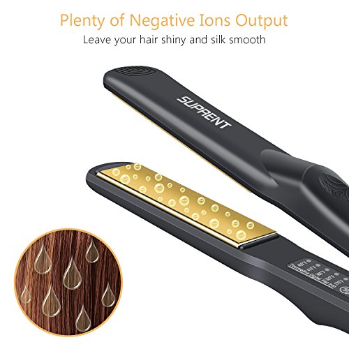 SUPRENT Titanium Flat Iron, Hair Straightener with Negative Ionic Technology, Worldwide 100-240V Dual Voltage, 1 inch, Black