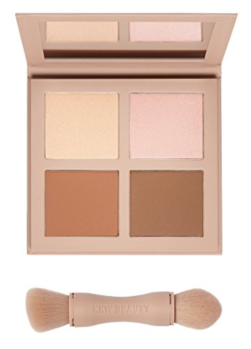 POWDER CONTOUR & HIGHLIGHT KIT MEDIUM Contour, shade, sculpt and highlight with the KKW Beauty Powder Contour & Highlight Kit. The soft, buildable powder formula makes application easy and blends effortlessly for a seamless look. The pressed powder quad features two matte contour shades, ideal for sculpting hollows of cheeks, hairline, nose and jawline, and two shimmer highlight shades for brightening and adding glow to cheekbones, cupid's bow, nose, corners of the eyes, collar bones and any areas you want to add radiant shimmer. Layer the two shimmer highlight shades for a more intense glow. Use the angled brush to apply and blend the contour shades, and the rounded brush to apply the highlighter shades. Highlight I - Soft Yellow Gold Highlight II - Champagne Pink Contour I - Warm Honey Contour II - Natural Tan