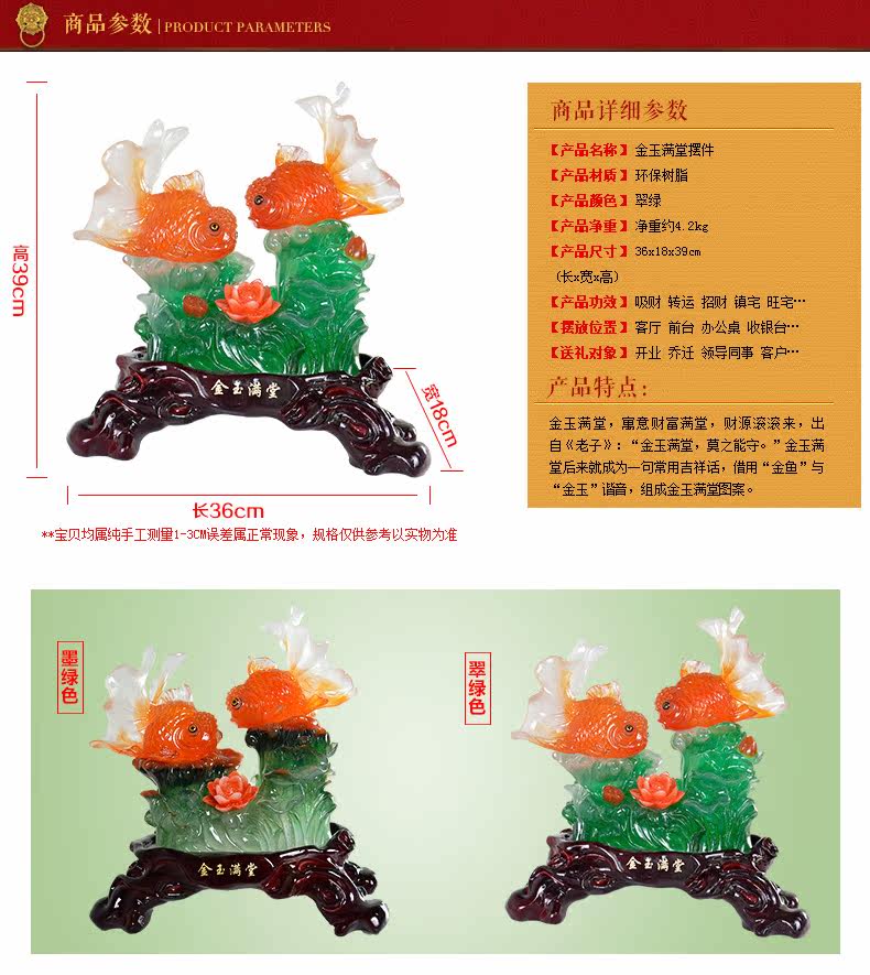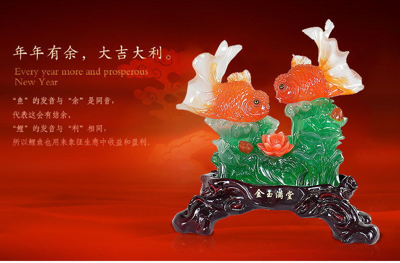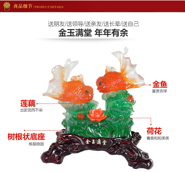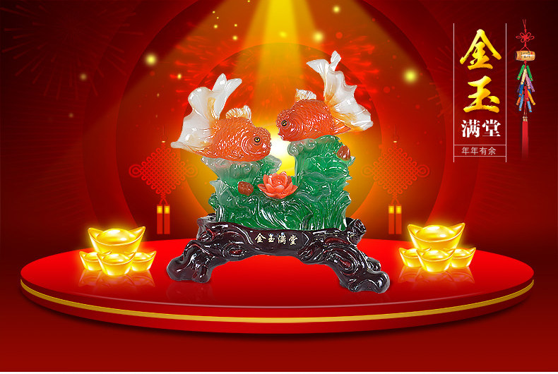 金玉满堂招财风水鱼摆件客厅电视柜装饰工艺品 乔迁新居开业礼品