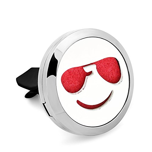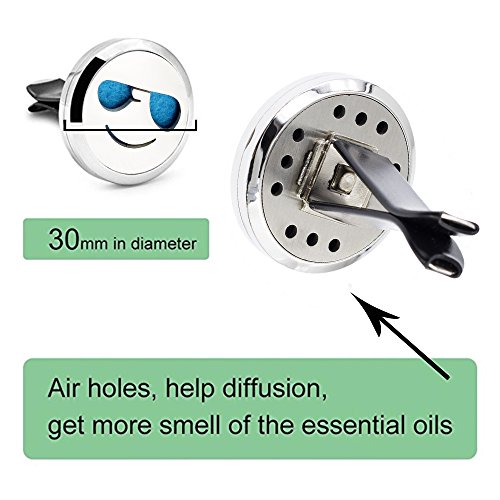 V-Diamond 30mm Aromatherapy Essential Oil Diffuser Stainless Steel Locket Air Freshener with Vent Clip and FREE 10 Felt Pads (Kool)