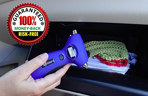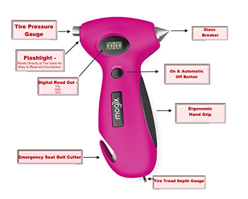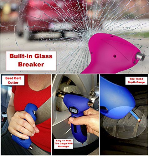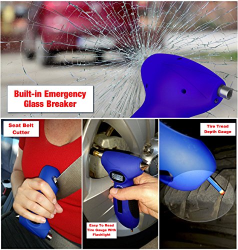 Auto Emergency Tool - These features show that this automotive gadget is the best for your car safety. This 5 in 1 tool not only sports an impressive digital read-out but also includes: A seat belt cutter, car glass breaker, flashlight and a tire tread depth gauge (remember, if your tread reading is in the red your tire life is dead).