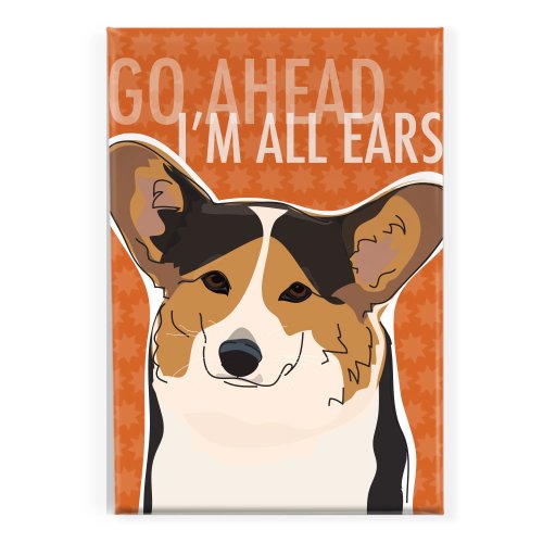 Pop Doggie Go Ahead All Ears Tri Color Pembroke Welsh Corgi Fridge Magnet