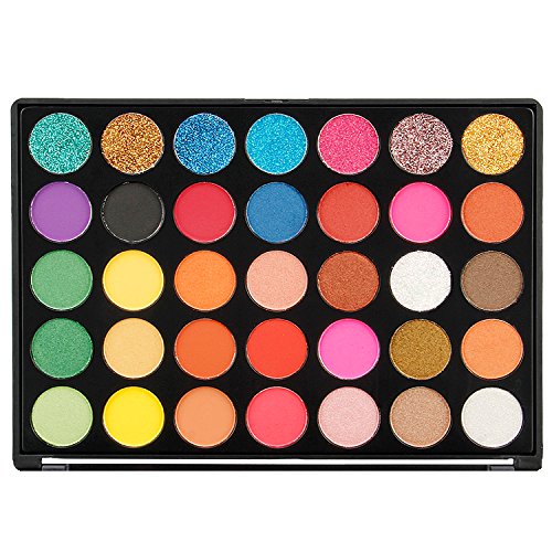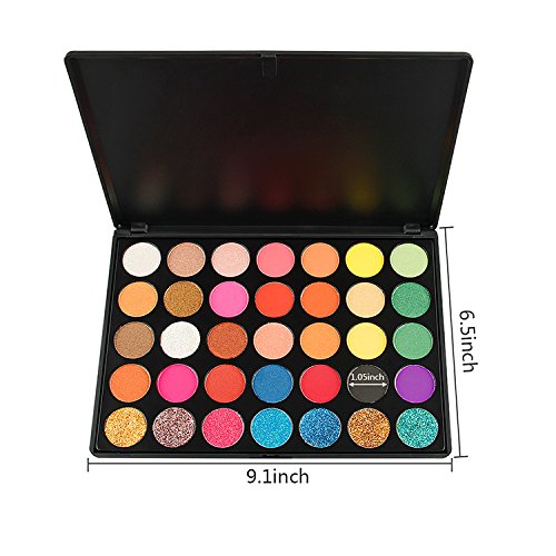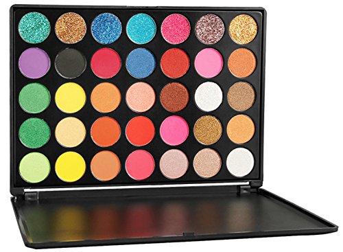 100% Cruelty Free. Featuring 35 vibrant shades in a combo of 11 matte shadows, 16 shimmer and metallic shadows, and 8 pressed glitters.