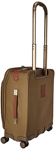 -. Feature : Durable ballistic nylon and handsome full grain leather. Wider, contoured handle system that provides 12 positions of height adjustment for unmatched ease of movement / Sleek, leather carry handles. Re-engineered wheel system that incorporates 12 individual, hardened steel cartridge bearings / Multiple pockets designed for organized and tailored packing / Adjustable ties tapes to keep belongings neatly secured / 22.0x16.0x9