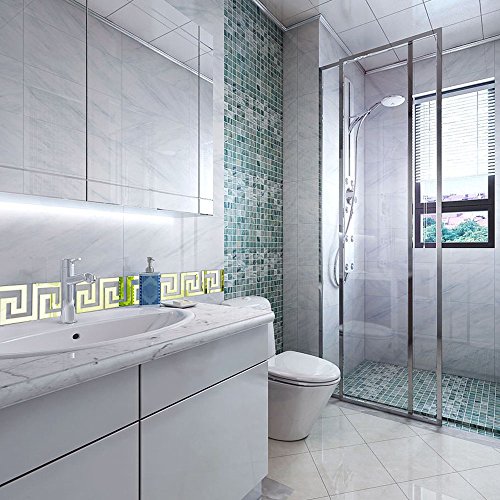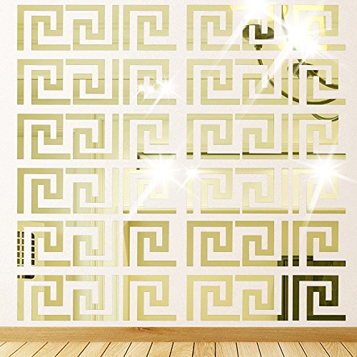 Himerus Mirror Wall Stickers Vintage Greek Key Geometric Pattern Removable Wall Decals DIY Vinyl Art Wall Sticker Art Home Decoration for Window Bedroom Sitting Room, 10 Pcs Gold
