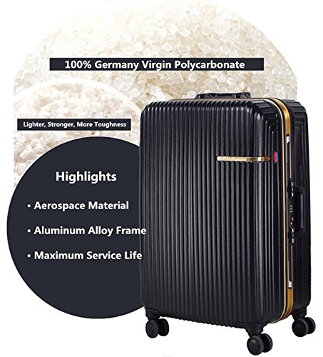 -. Brand : Ambassador -. Department : unisex-adult -. Feature : 100% pure Germany imported Bayer polycarbonate, which makes the case lightweight and durable; / Extra strength aluminum alloy pulling rod and high quality ABS Ergonomics designed handle; / Double spinner rubber wheels assure exceptional maneuverability and keep zero weight on your arm; / Integrated 3 dial TSA accepted combination lock. 24" x 16.5" x 10" (27" x 17.5" x 10.5" including wheels and handles), Ultra-light weight frame lage, only 11 lbs. -. ProductGroup : Apparel -. ProductTypeName : LAGE -. Title : Ambassador Lage 25" Ultra Light Zipperless Frame Polycarbonate Spinner Suitcase