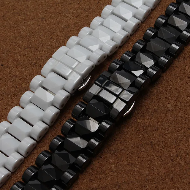 상품 내용 아름다운 손목 시계 밝은 시계 액세서리 흑백 세라믹 시계 스트랩 팔찌 19mm 러그 러그 10mm 브랜드 시계 뜨거운