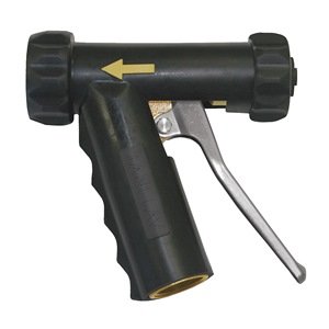 -. Feature : P.R.Ice For: Each Flow Control: Trigger Features: Adjustable Spray, Hot and Cold, 3/4" GHT Threaded Front, Insulated Handle, Crash Resistant Design: Rear Trigger Construction: Brass/Stainless Steel Connection: 3/4" GHT Max. Temp.: 200 Degrees F Length: 5-1/2" Item: Spray Nozzle Flow Rate: 2.5 to 7.5 gpm Color: Black Max. Pressure: 150 psi / Country of Origin (subject to change): Taiwan
