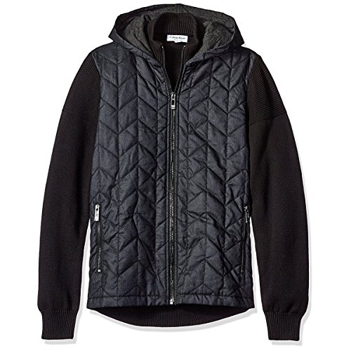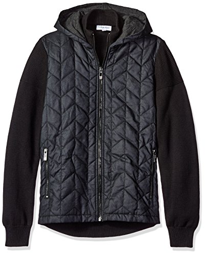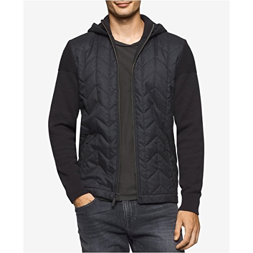 Calvin Klein Men's Quilted Herringbone Mixed Media Hoodie
