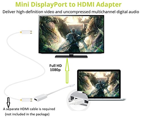 -- Mini DisplayPort(Male)1.1a input to HDMI(Female) 1.3b output and transmits both audio and video from Laptop or Tablet PC to HDTV display.