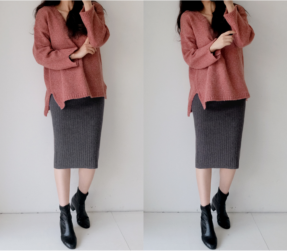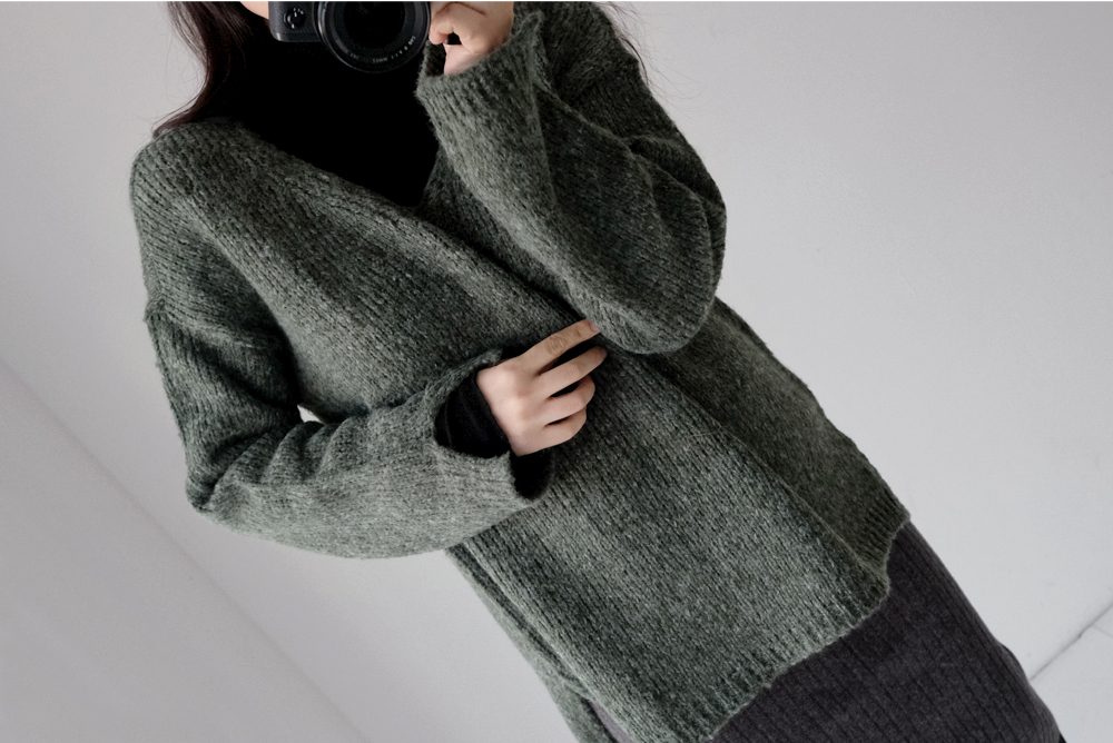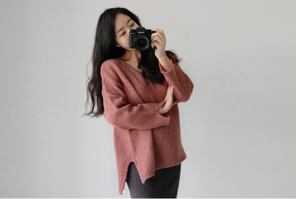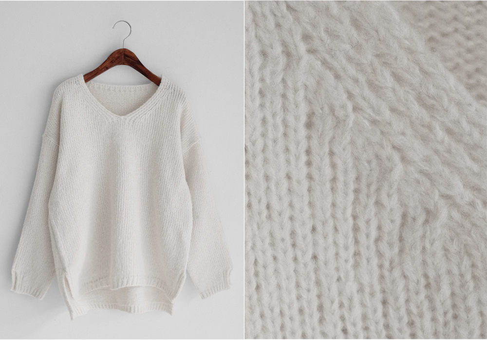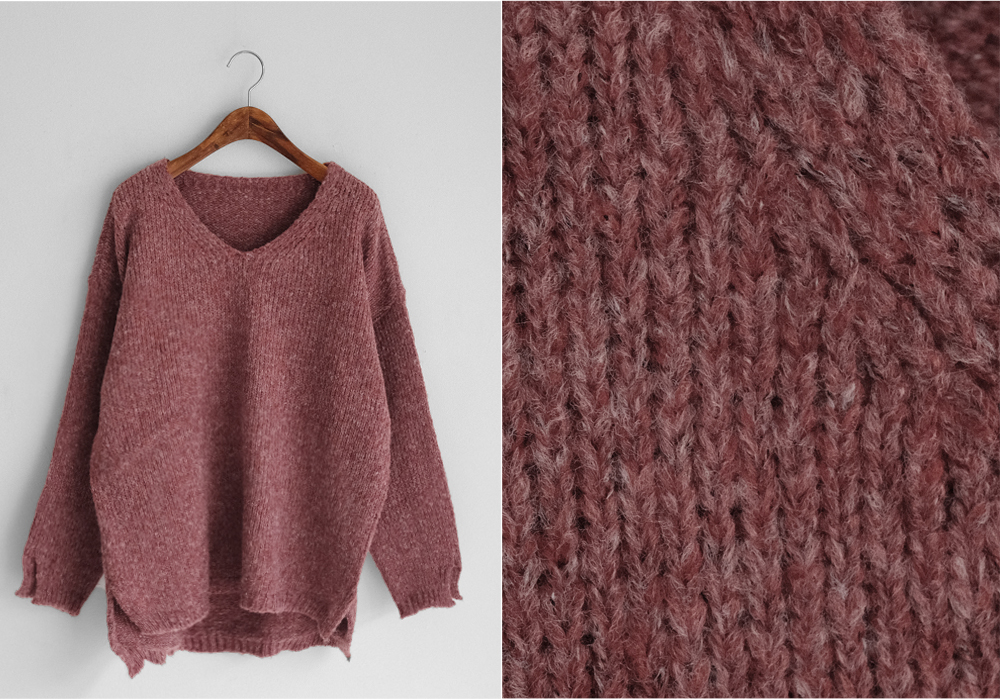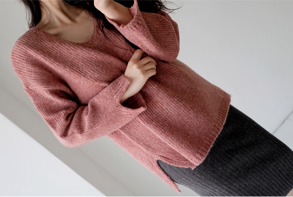 화사하게 얼굴빛을 살려주는 따뜻한 색감의 브이넥 니트에요:)