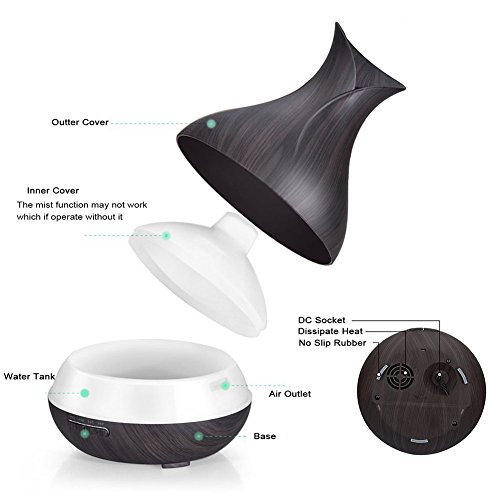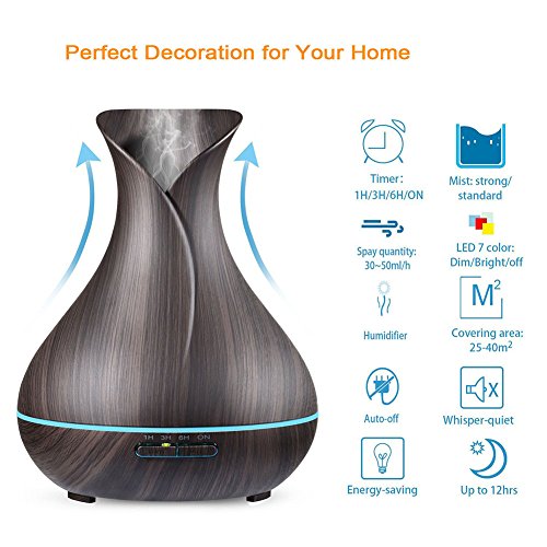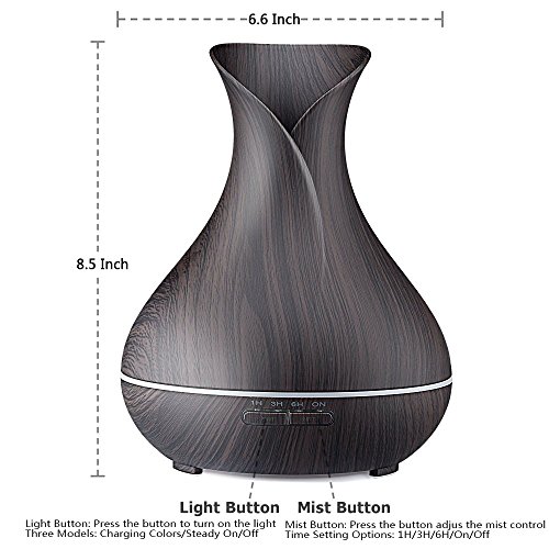 ✔【Elegant Design with Inspiration】 Classical style wood grain meets elegant modern vase-shape design, it looks like a beautiful flower vase which can decorate your room nicely, not only with its aroma diffuser function. It will bring you a good mood through its natural and elegant appearance whenever you take a glance at it. It's ideal for your home, office, baby room, hotel, yoga, spa, salon and any room you want aromatheropy.