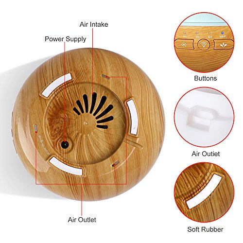 Zeiteinstellung und Nebelsteuerung, verfugt uber 4 Timer-Einstellungen (1H / 3H / 6H / Continuous-Modus) und starke oder schwache Nebel-Optionen. Im Zyklus der unteren Eigenschaften mit 7 einstellbaren beruhigenden LED-Lichtern, nicht uberwaltigend, arbeiten auch grossartig wie Nachtlicht. Ihr bester Partner fur Haus, Hotel, Buro, Verein oder Yoga ...