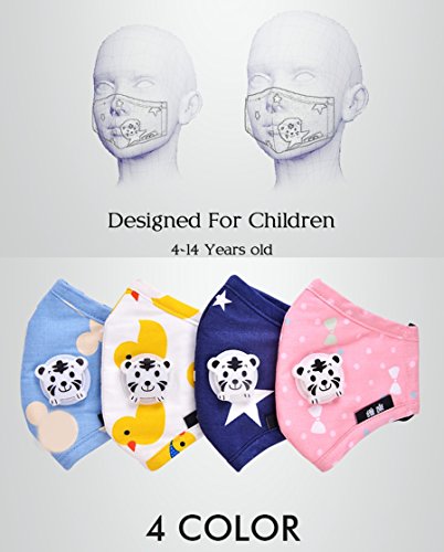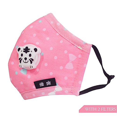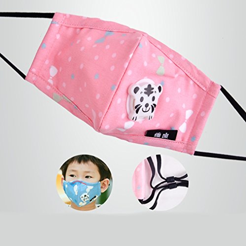 Child's Mask Washable Cotton Mouth Masks With Valve Replaceable Filter (One Mask + 2 Filters) 4 Layer Activated Carbon Filter Insert Suit For 4-14 Years Old For Girl Pink Butterfly