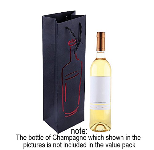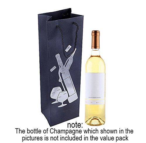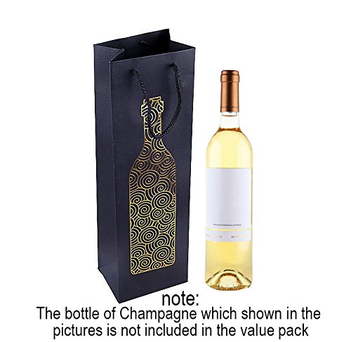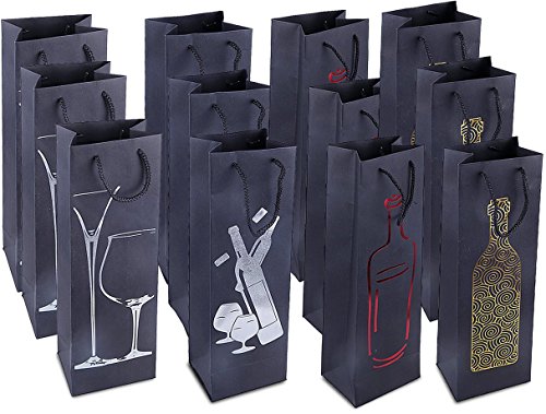 Wine Gift Bags- Single Bottle Wine Alcohol Liquor Spirits Bag - 4 Foiled Embellished Designs- 12 Piece Set - 4.7 x 3.7 x 15.5 Inches