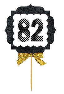 82nd Birthday / Anniversary Gold Ribbon Hand Crafted Novelty Cupcake Decoration Toppers / Picks -12ct