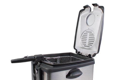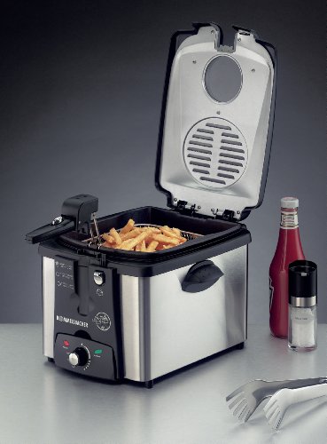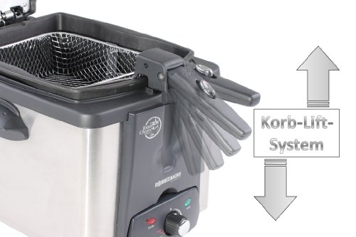 -. Feature : Fassungsvermögen 2,5 Liter / antihaftbeschichteter, herausnehmabrer Frittierbehälter aus Aludruckguss / abnehmbarer Klappdeckel mit Sichtfenster und Permanentfilter, Total-Clean-System, zur Reinigung komplett zerlegbar, spülmaschinengeeignet / Temperatur bis 190°C regelbar / Korb-Lift-Funktion bei geschlossenem Deckel, mit Überhitzungsschutz und Kontrolllampen