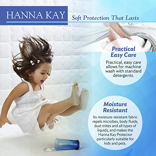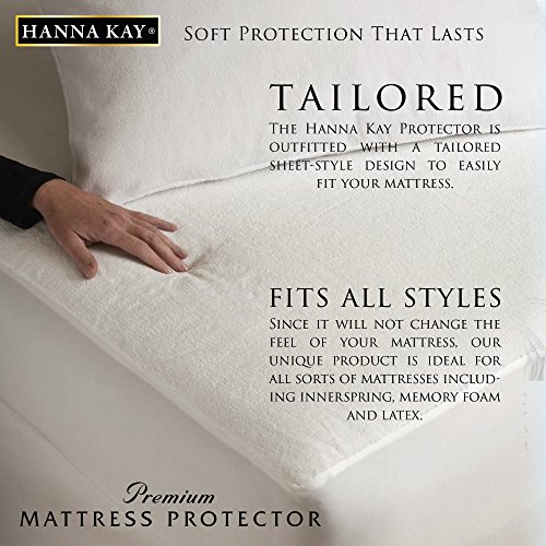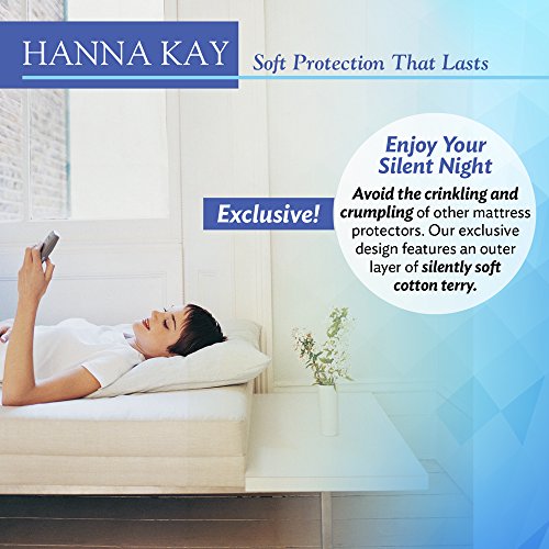 -. Feature : NO CRINKLING: Hanna Kay is made with a superb terry cloth and backed by a waterproof membrane that contains microscopic divots for air to flow through. This sturdy material and design means when you lie down, you won't hear a thing, unlike other protectors that produce cheap, crinkly plastic sounds. / PROTECT YOUR MATTRESS: A thin membrane of polyurethane backing guards against stains that could void your mattress warranty. Avoid other mattress protectors that use regular plastics and do not protect as fully, as blemishes come in all shapes and sizes. With Hanna Kay's 100% waterproof mattress protector, you'll be ready for anything / SLEEP WITH COMFORT: At the end of your day, you want to feel nothing but comfort between you and your bed. There's a reason Hanna Kay mattress protectors are known as the most comfortable mattress protectors on the market: it's made ultra-thin and with the best material (not bamboo like our competitors, which can cause rashes), so you won't even remember you have it on under your sheets! / IDEAL PREVENTION FOR ALLERGY, ASTHMA, AND ECZEMA: Keep dust mites, mold, fungus, and other allergens-not to mention bed bugs-from taking root in your mattress. We designed Hanna Kay's mattress protectors to keep our customers healthy and clean for years to come. / OUR "GOOD-NIGHT REST" 10-YEAR WARRANTY: We stand behind our product-our mattress protectors don't make noise when you sleep on them, and they keep you cool, protected, and dry. If for any reason you stop loving your Hanna Kay mattress protector simply return it for a 100% no-questions-asked refund. Also available in Twin, Full, and King sizes. So click "ADD TO CART" with no risk today!