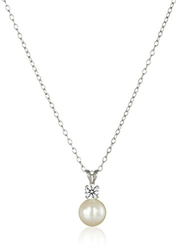 Sterling Silver Cubic Zirconia 7-8mm Freshwater Cultured Pearl Stud Earrings and Pendant Necklace Jewelry Set
