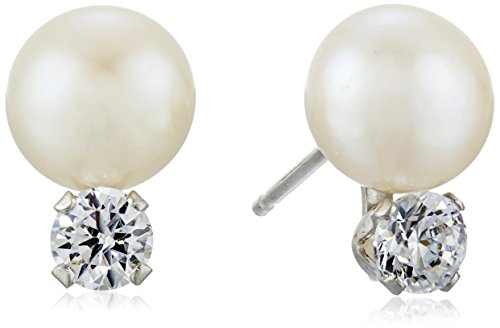 A sparkling .25ct cubic zirconia featured on each pearl