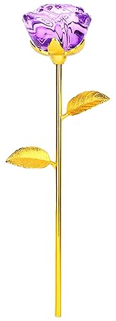 [Product Information]- 24 carat real gold plated stems and leaves, colored crystal glass rose bud. It is all handmade by our skillfull craftsman