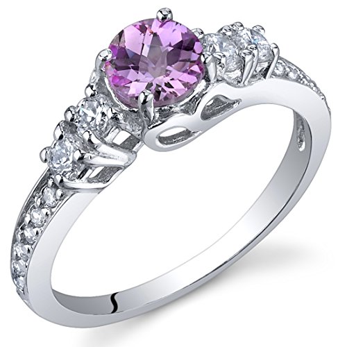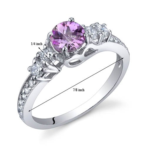 -. Title : Enchanting 0.50 Carats Created Pink Sapphire Ring in Sterling Silver Rhodium Nickel Finish Sizes 5 to 9