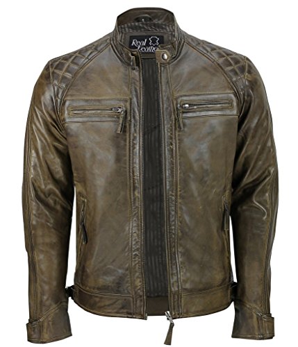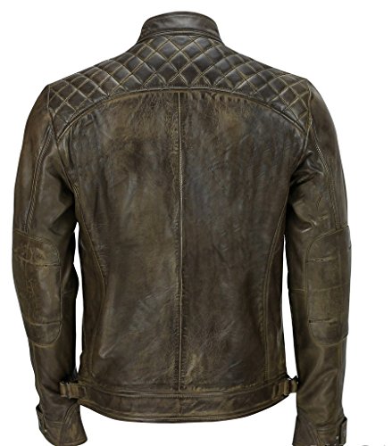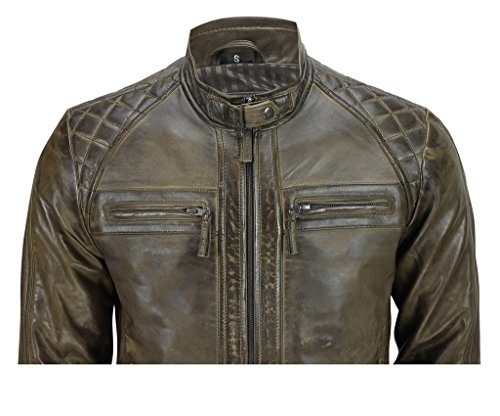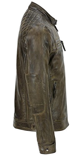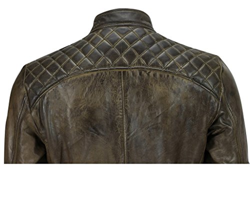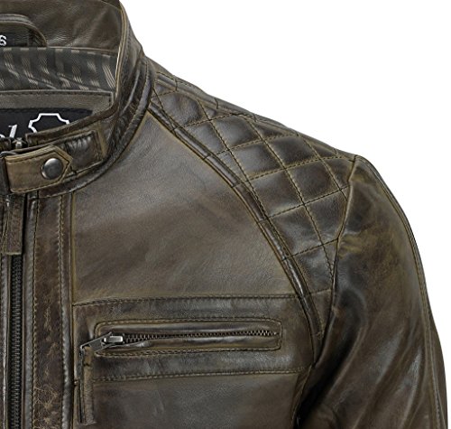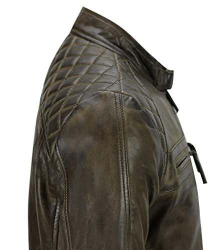 Infinity Herren Braun Retro gesteppte Echt Nappa Bikerjacke aus Leder