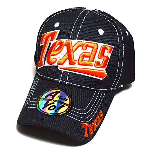 Binding : Apparel Product Description State of TEXAS 3D Embroidered Curved Visor Bill Caps Hiphop Baseball Golf Basketball Sports Head Wear Hats AYO1048 Structured Firm Front 6 Panel Cap with 6 Embroidered Eyelets Durable Golf Baseball Sports Basketball Fashion Hat Wear Material : 100% Acrylic [ Made by High Quality Premium Fabric ] Adjustable : Velcro Loop Tape Closure / Men Women Fashion Accessories Head Wear ! One size fits most with adjustable, fitting up to size 7 1/2 ~ x Large Crown measures 4 3/4 inches deep. [ 8(W) X 10.5(L) X 4.75(H) inches ] Bill measures 2 3/4 inches long, constructed, high profile, stiff and flat ! 0