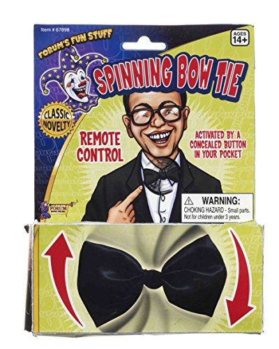 -. Binding : Apparel -. Brand : Forum Novelties -. Color : Black -. Department : mens -. Feature : Remote control novelty spinning bow tie / Activated by a concealed button in your pocket / Great for a laugh at parties or for everyday fun / One size fits most adults / Made by Forum Novelties, a leader in costumes and novelty products for more than 30 years -. Genre : Boas/Scarves -. IsAdultProduct : 0 -. Label : Forum Novelties Costumes -. Manufacturer : Forum Novelties Costumes -. MPN : 67898 -. PackageQuantity : 1 -. PartNumber : 67898 -. ProductGroup : Apparel -. ProductTypeName : ADULT_COSTUME -. Publisher : Forum Novelties Costumes -. Studio : Forum Novelties Costumes -. Title : Forum Novelties Men's Novelty Spinning Bow Tie