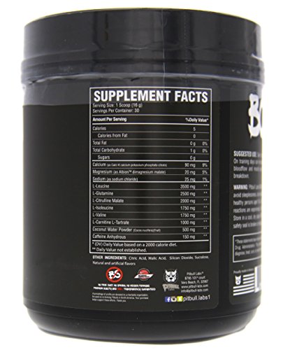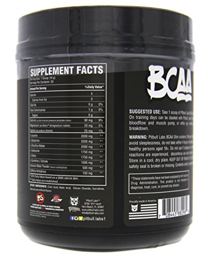 -. Title : PITBULL LABS BCAA's 7g Natural BCAA's, ZERO Sugar, 1g L-Carnitine, 2g Citrulline, 25g L-Glutamine, 30 Servings